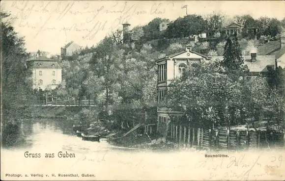 Ak Guben in der Niederlausitz, Teilansicht, Baumblüte