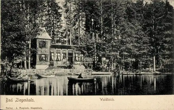 Ak Głuchołazy Zdrój Bad Ziegenhals Schlesien, Hotel am Waldteich