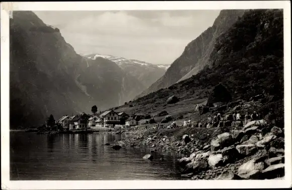 Ak Gudvangen Norwegen, Panorama, Uferpartie