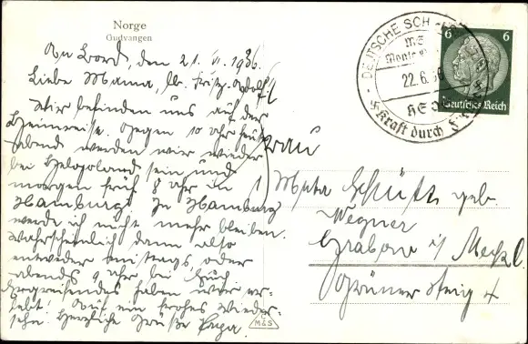 Zustand, siehe Scan, gelaufen, 1936 - ca 14 cm X 9 cm