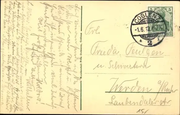 Zustand, siehe Scan, gelaufen, 1912- Inh. Geschw. Zillien - ca 14 cm X 9 cm