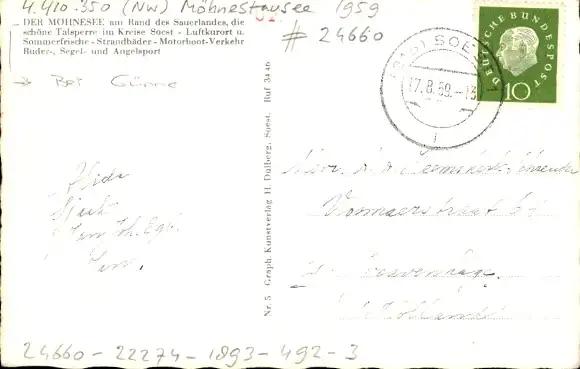 Zustand, siehe Scan, gelaufen, 1959 - ca 14 cm X 9 cm
