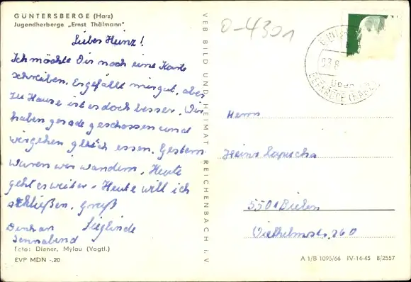 Ak Güntersberge Harzgerode am Harz, Jugendherberge Ernst Thälmann