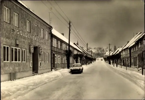 Ak Güntersberge Harzgerode am Harz, Marktplatz, Goldener Löwe, Auto, Winteransicht