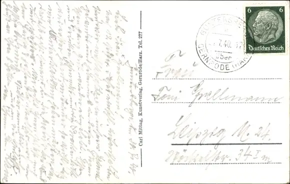 Zustand, siehe Scan, gelaufen, 1940 - ca 14 cm X 9 cm