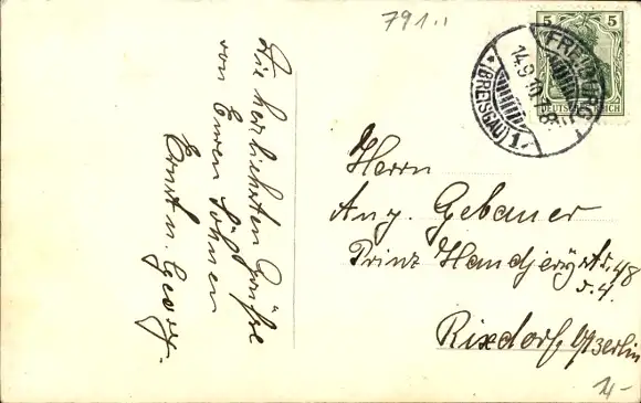 Zustand, siehe Scan, gelaufen, 1910 - ca 14 cm X 9 cm