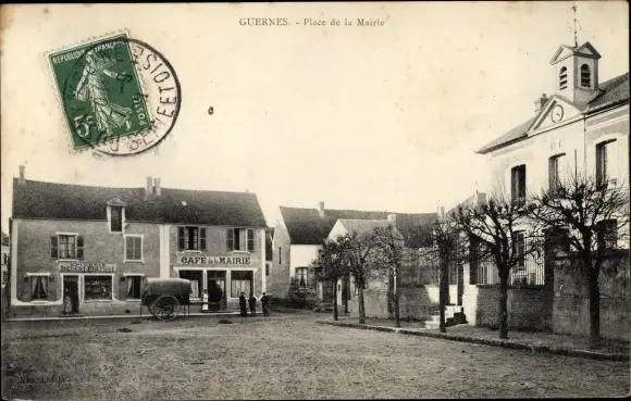 Ak Guernes Yvelines, Place de la Mairie