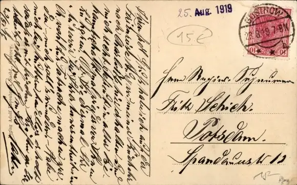 Zustand, siehe Scan, gelaufen, 1919 - ca 14 cm X 9 cm