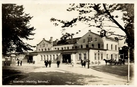 Ak Güstrow in Mecklenburg, Bahnhof, Straßenseite