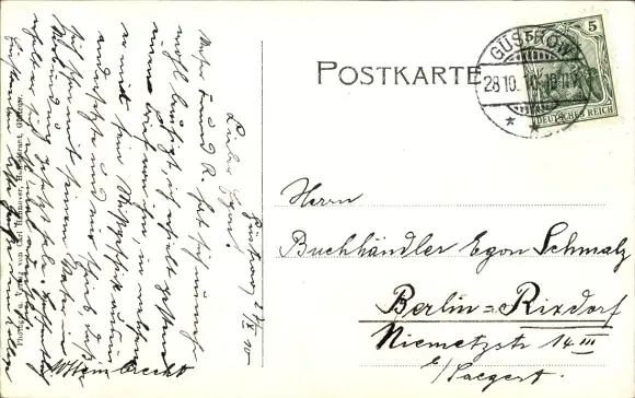 Zustand, siehe Scan, gelaufen, 1910 - ca 14 cm X 9 cm