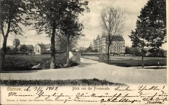 Ak Güstrow in Mecklenburg, Blick von der Promenade