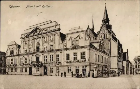 Ak Güstrow in Mecklenburg, Markt mit Rathaus
