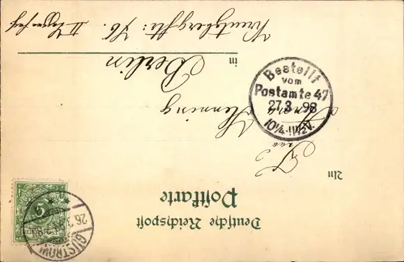 Zustand, siehe Scan, gelaufen, 1898 - ca 9 cm X 14 cm