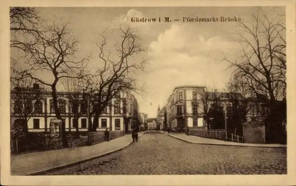 Ak Güstrow in Mecklenburg, Pferdemarkt Brücke