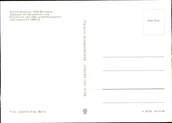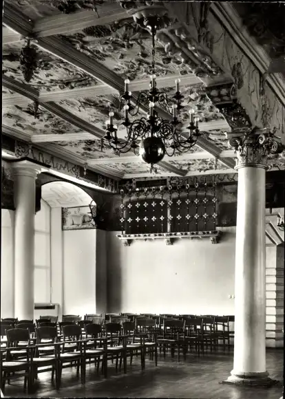Ak Güstrow in Mecklenburg, Schloss, Jagdsaal, Stuckdecke, Hirschfries
