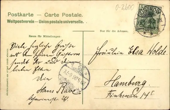 Zustand, siehe Scan, gelaufen, 1906- Zieher - ca 9 cm X 14 cm