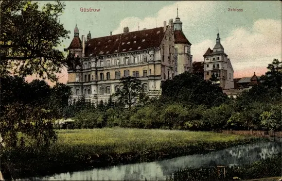Ak Güstrow in Mecklenburg Vorpommern, Partie am Schloss