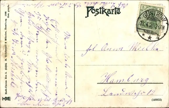 Zustand, siehe Scan, gelaufen, 1908 - ca 14 cm X 9 cm