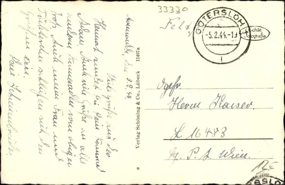 Zustand, siehe Scan, gelaufen, 1944 - ca 14 cm X 9 cm