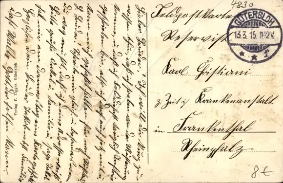Zustand, siehe Scan, gelaufen, 1915 - ca 14 cm X 9 cm