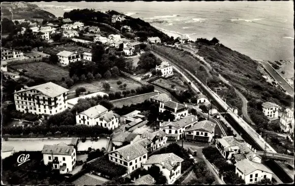 Ak Guéthary Pyrénées Atlantiques, Vue aerienne, vue generale