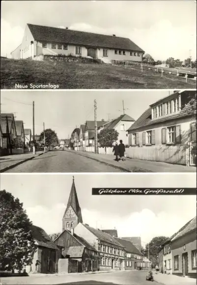 Ak Gützkow in Vorpommern, Neue Sportanlage, Ortsansicht