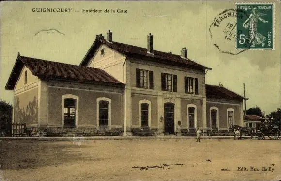 Ak Guignicourt Aisne, Extérieur de la Gare