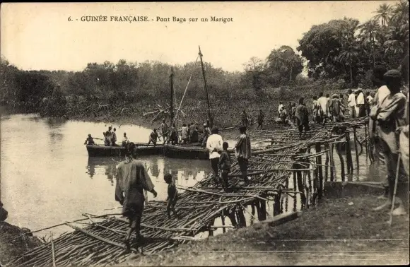 Ak Guinea, Pont Baga sur un Marigot, Brückenpartie, Boote