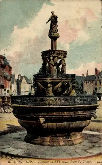 Ak Guingamp Cotes d'Amor, Fontaine du XVI siecle, Place du Centre