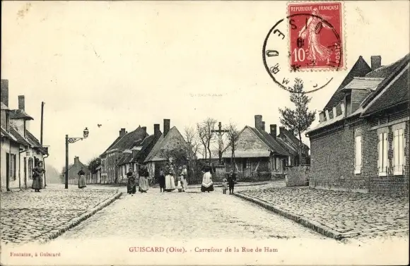 Ak Guiscard Oise, Carrefour de la Rue de Ham