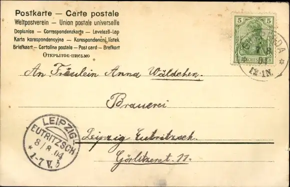 Zustand, siehe Scan, gelaufen, 1904 - ca 14 cm X 9 cm