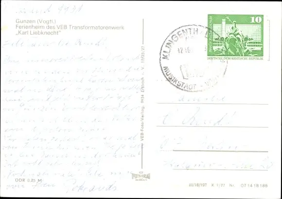 Ak Gunzen Schöneck im Vogtland, Ferienheim des VEB Transformatorenwerk "Karl Liebknecht"