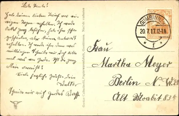 Zustand, siehe Scan, gelaufen, 1917 - ca 14 cm X 9 cm