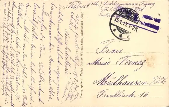 Zustand, siehe Scan, gelaufen, 1917 - ca 39 cm X 25 cm