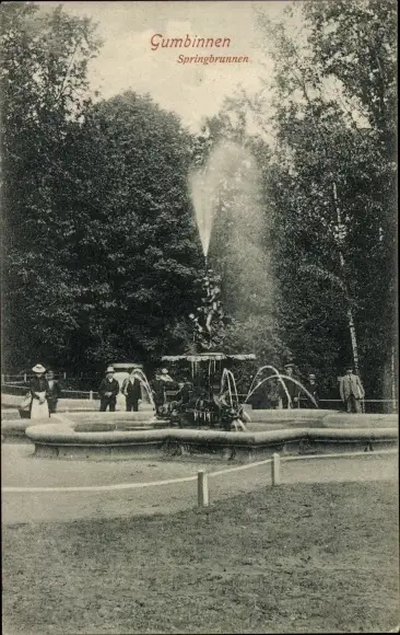 Ak Gussew Gumbinnen Ostpreußen, Springbrunnen