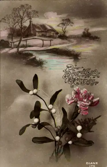 Ak Gutes Jahr, Dorfansicht, Blumen