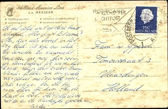 Ak HAL Dampfer SS Maasdam, Holland-America Line