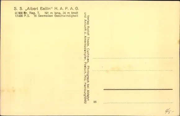 Ak HAPAG Dampfer Albert Ballin
