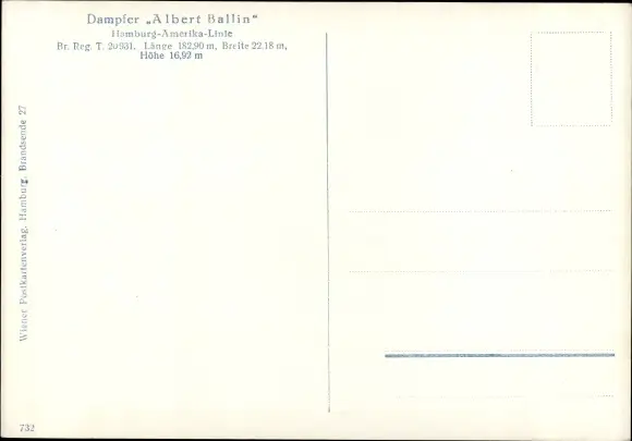 Ak HAPAG Dampfer Albert Ballin, Hamburg Amerika Linie