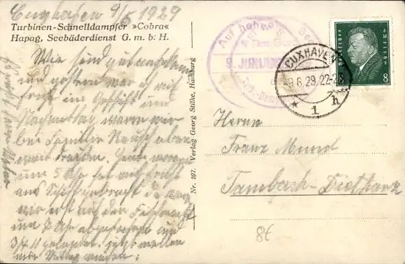 Ak HAPAG Dampfer Cobra, Seebäderdienst
