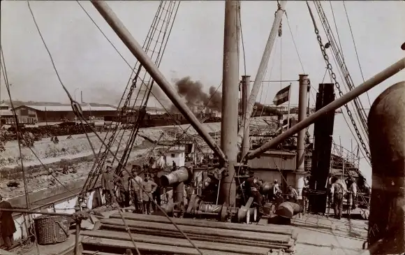 Ansichtskarte, Postkarte, Hafen, Schiffe, Boote, Dampfer, Boot