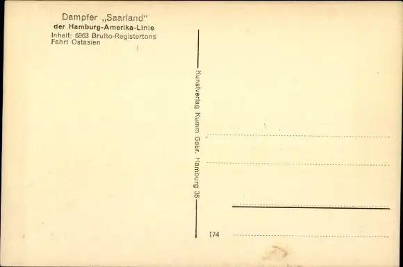 Ak HAPAG Dampfer Saarland, Passagierdampfer