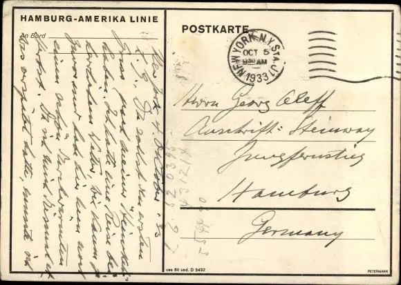 gelaufen 1933, Briefmarke entfernt, fleckig, sonst guter Zustand