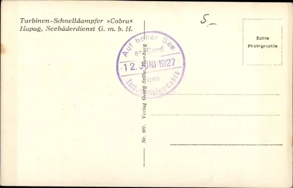 Ak HAPAG Seebäderdienst, Turbinen Schnelldampfer Cobra