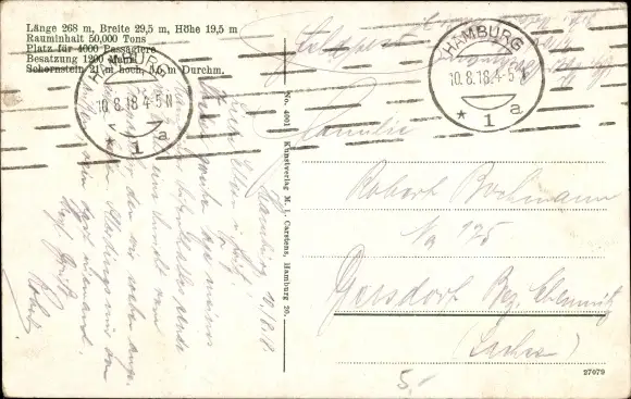 Ansichtskarte, Postkarte, HAPAG, Hamburg Amerika Linie