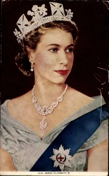 Ak H.M. Queen Elizabeth II, Portrait, Krone, Orden