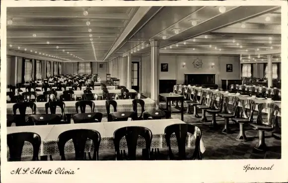 Ak HSDG Dampfer Monte Olivia, Zweischraubenmotorschiff, Speisesaal