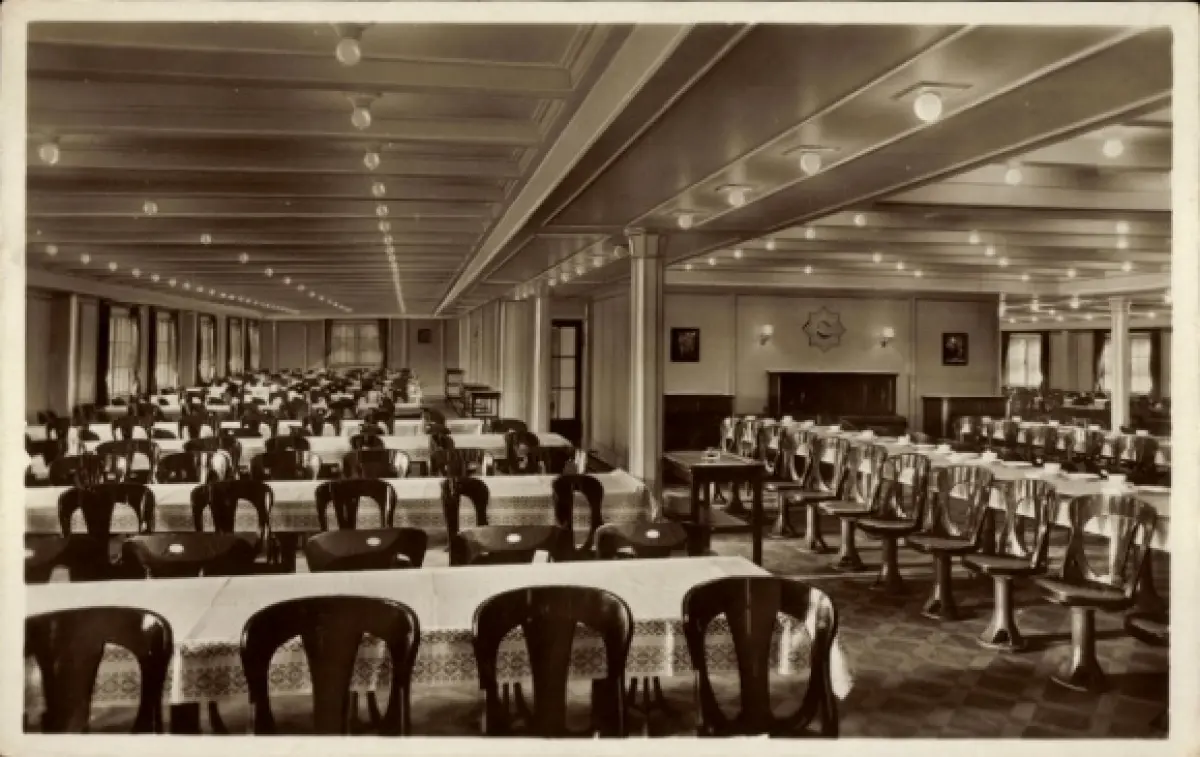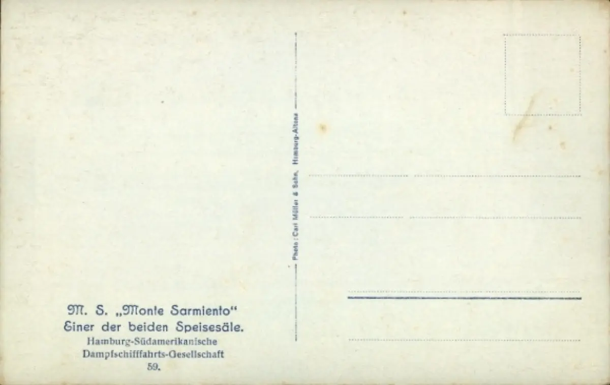 Ak HSDG Dampfer Monte Sarmiento, Zweischraubenmotorschiff, Einer der beiden Speisesäle