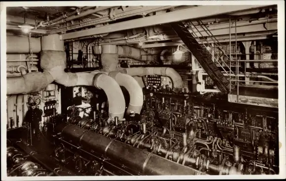 Ak HSDG Passagierschiff MS Monte Cervantes, Maschinenraum, Innenansicht