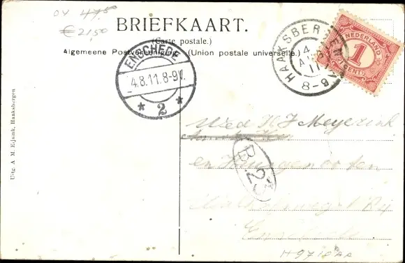Zustand, siehe Scan, gelaufen, 1911 - ca 14 cm X 9 cm